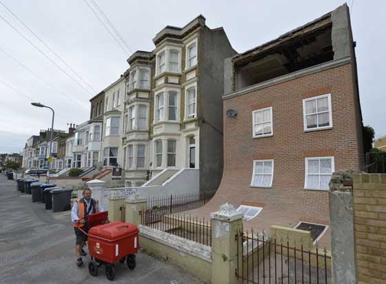 7- هذا البيت غريب الأطوار في مارغيت بإنجلترا حيث يبدو وكأنه يذوب، وصممه الفنان الانجليزي اليكس شيناك، وهو بمثابة قطعة فنية ولا أحد يعيش بداخله