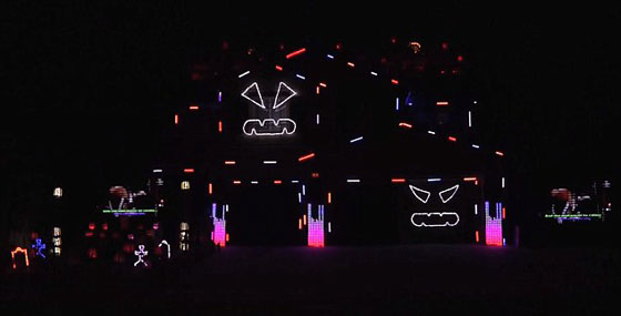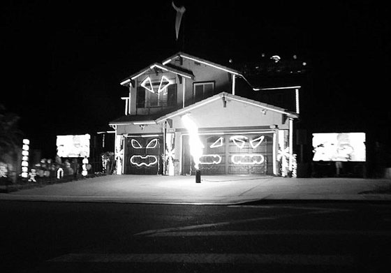 أبهر منزل بكاليفورنيا الجميع بأضواء الهالوين الخاصة به. ويظهر المنزل يغني بوجه متحرك مع شاشات عرض تعرض صورًا مرعبة، ويشهد المارة ما يحدث للمنزل في ظلام الليل، بينما يجلسون أرضًا ليلتقطوا له مقاطع الفيديو. بدأ "كيفن جاد" عرضه عام 2008 واستغرق هو وزوجته أسبوعين كاملين لإكمال زينة وأضواء المنزل، مستخدمين 400 ألف وحدة من أضواء "LED"، ويستمر العرض لمدة 30 دقيقة.