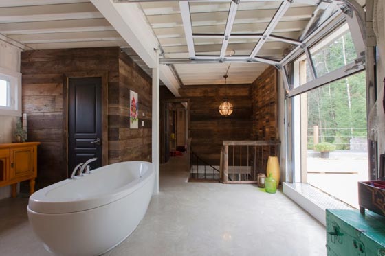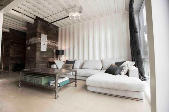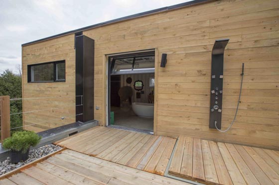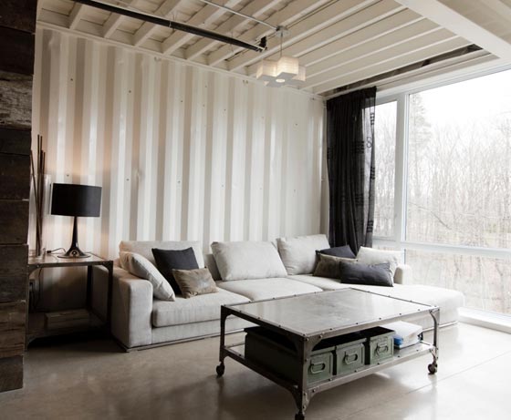 كلودي دوبروي، من بلدة ميرابيل في كيبيك الكندية، قرّرت بناء بيت باستخدام مواد غير تقليدية، فاتصلت أولًا بشركة هندسية وطلبت 4 حاويات شحن معدنية كبيرة. خلال أسبوعين، كانت الحاويات جاهزة، وتمكّن البنّاؤون من تشييد إطار البيت الجديد في يوم واحد لا غير. وبعدئذ تمّت تغطية هذه الحاويات بألواح من خشب الصنوبر.