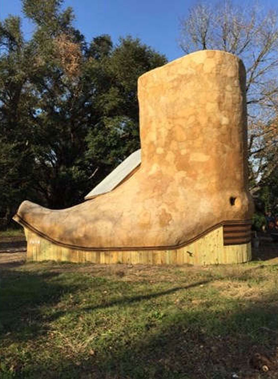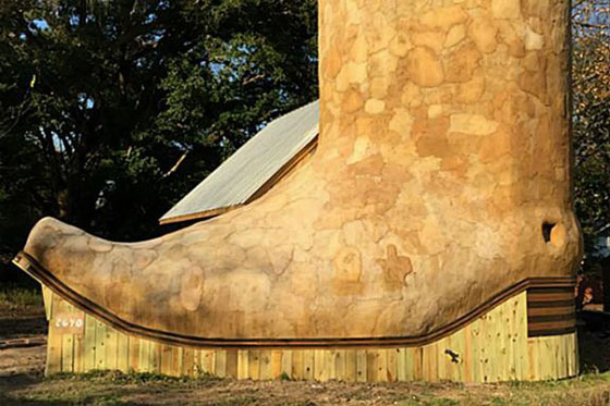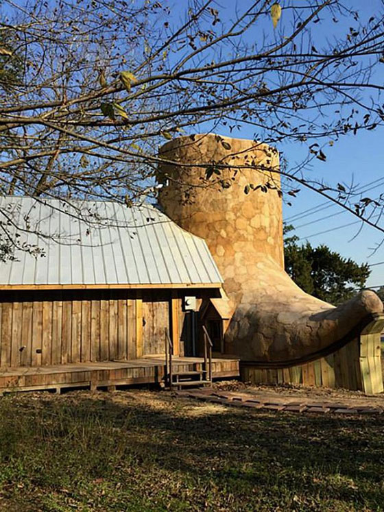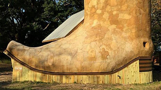 هذه جولة داخل منزل صمم على هيئة حذاء رعاة البقر "كاوبوي"، وهو معروض الآن للإيجار بعد التشطيب النهائي هذا الأسبوع. ويقع هذا البيت الغريب الشكل في هيوستن بولاية تكساس الأميركية. وقد صمم المنزل الغريب المكون من غرفتي نوم ومطبخ وحمام، الفنان دان فيليبس، وتبلغ مساحته الكلية 711 قدما مربعة.