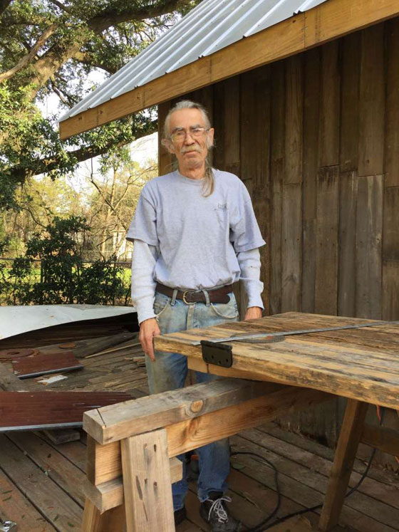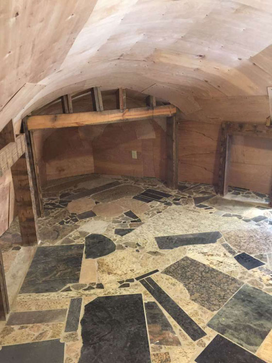لكن الدهشة سوف تتضاعف عندما نعلم طبيعة المواد المستخدمة في البناء، التي درج عليها هذا الفنان "المجنون"، حيث يستعمل مجموعة من المواد المعاد تدويرها في البناء، والتي تتضمن الفلين وإطارات الصور القديمة وحتى الأقراص المدمجة البالية.