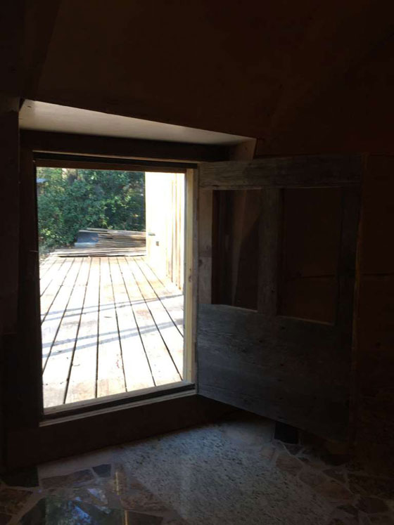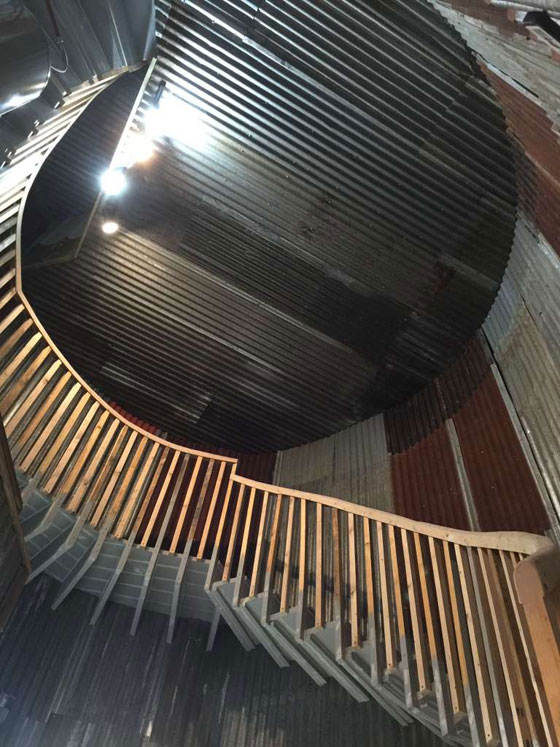 وهذا المنزل "الأحمق" – كما وصفه البعض، له سلم حلزوني داخلي يقود إلى السطح. وليس للمستأجر أن يقلق بالسكن في هذا البيت الصغير أو الغريب، لأنه في الأصل مرتبط بمنازل تقليدية مجاورة أوسع.