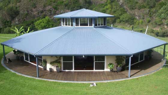 منزل "Evergreen" القابل للالتفاف في أستراليا، ويقع المنزل على بعد أربع ساعات بالسيارة عن مدينة سيدني. ويتميز المنزل بالشكل الثماني الأضلاع