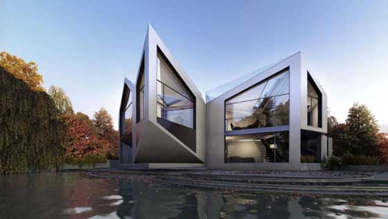 منزل "Dynamic D*Hause" في ألمانيا. ويغلق المنزل على نفسه تلقائياً في الشتاء، من خلال طي أجزائه بهدف توفير الطاقة. ويفتح صيفاً للسماح بأشعة وحرارة الشمس في الدخول إليه