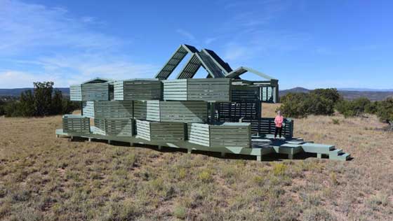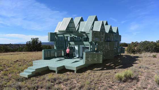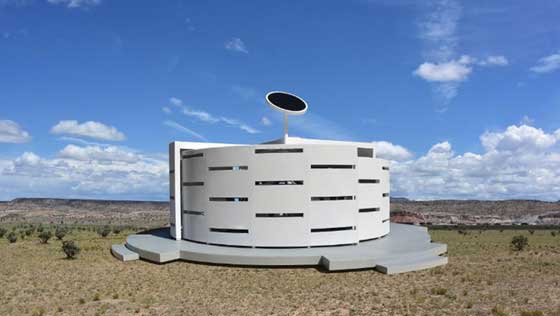 منزل "The Rotating Radius" في ولاية نيو مكسيكو الأمريكية، من تصميم المهندس المعماري مايكل جانتزن. ويتألف المنزل من ألواح منحنية تلتف على عجلات يمكن فتحها لكشف المنزل للشمس أو إغلاقها