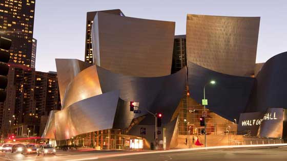 6. لوس أنجلوس: يُعتبر مركز"والت ديزني" في مدينة "لوس أنجلوس" الذي افتتح عام 2003 من أكثر المراكز روعة في العالم، وتبلغ مساحة المشروع حوالي الـ 18 متر مربع، ويضم المركز قاعة كبيرة تقع وسط المركز مُخصصة لإقامة الحفلات الموسيقية وهي موطن لأوركسترا "لوس أنجلوس"، وتستوعب القاعة قرابة 2400 شخصاً.