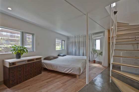 هناك مثل قائل "لا تحكم على الكتاب من غلافه"، والشيء نفسه ينطبق على المنازل، خصوصا على هذا المنزل الياباني الصغير جدا. المنزل تم تصميمه من قبل المهندس المعماري" Mizuishi Architects Atelier" على مساحة قدرها 55 مترا مربعا، والغريب في هذا المنزل أنه يبدو صغيرا من الخارج، ومع ذلك يبدو من الداخل أكثر اتساعا مما نتوقع. يتكون البيت من طابقين، يحتوي الطابق الأول على غرفة نوم، أما الطابق الثاني به المطبخ وغرفة المعيشة، بالإضافة إلى غرفة ألعاب صغيرة، ويتميز البيت باللون الأبيض، ما زاده وسعا وإشراقا.