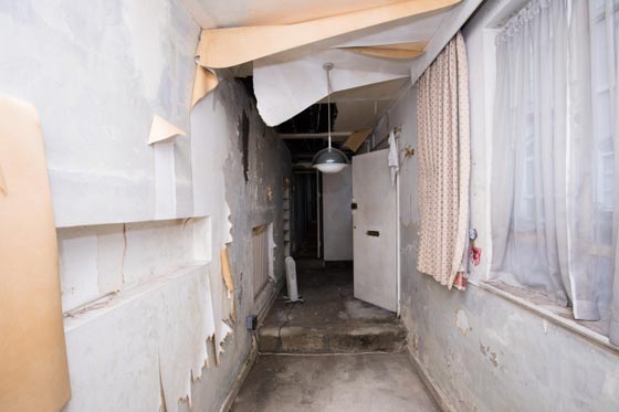 المنزل لا يتعدى عمقه الداخلي 2.5 قدم، ما يجعله أقرب لقبر طولي منه لمنزل، خاصة مع الإهمال الحاصل فيه والأوساخ المتراكمة والقمامة. وإذا كانت المساحة الداخلية الكلية المستطيلة تبلغ 280 قدما مربعا أي 26 متر مربع فقط، إلا أن هذا العقار يبدو كما لو أنه جزء من عربة قطار قديم مهجورة وليس منزلا سكنيا بأي حال من الأحوال. ومع ذلك، هناك إمكانية في إعادة تخطيط المكان بشكل يجعله أكثر رحابة كاحتمال إضافة طابق مسروق علوي، وهذا يعتمد على شطارة المهندس المعماري.