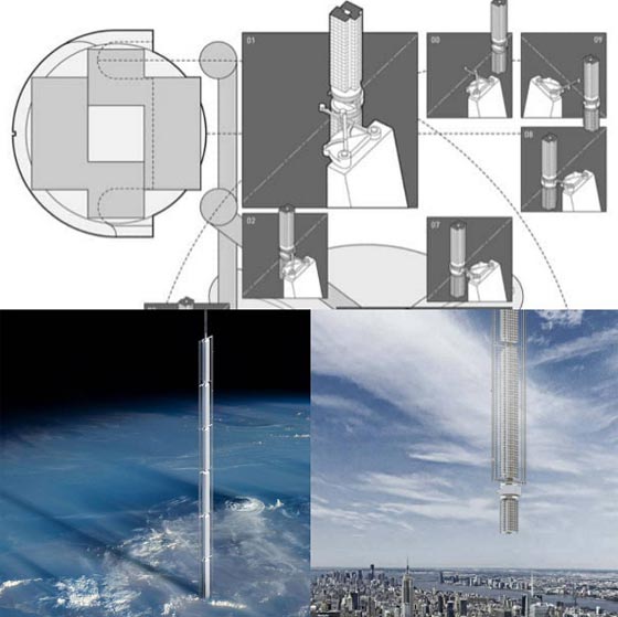 هل مللت الأبراج العالية، وناطحات السحاب الشاهقة، وتصاميم العمارة الملتوية، والمتحركة في تصاميمها؟ إذ كنت تبحث عن "صرعة" جديدة و"ثورة" في عالم التصميم، فألبك تصاميم مجنونة تعبّر عن أحدث مفهوم بناء، سيقلب مقاييس البناء رأساً على عقب. وقد أعلنت شركة العمارة "كلاودس أركيتيكتشور أوفيس" عن خطط لتصميم برج "مستقبلي" في دبي، تحت اسم "برج أناليما". وتخطط الشركة إلى تعليق البرج فوق الأرض من خلال وصله بكويكب في الفضاء يدور حول الأرض.