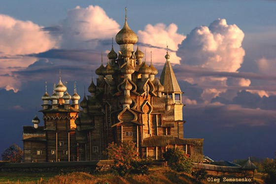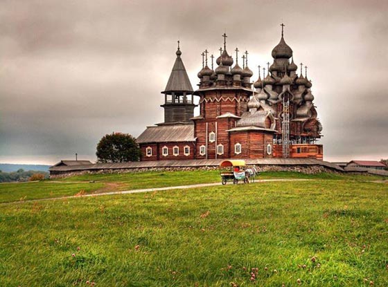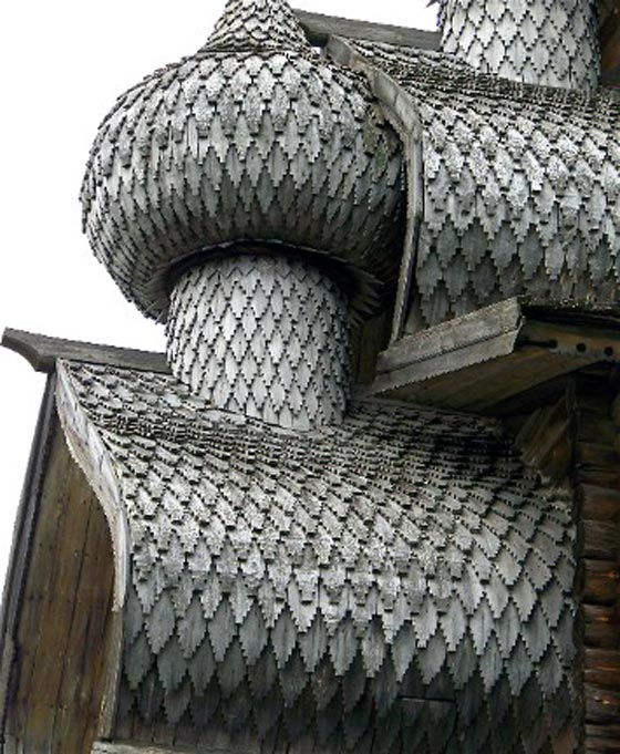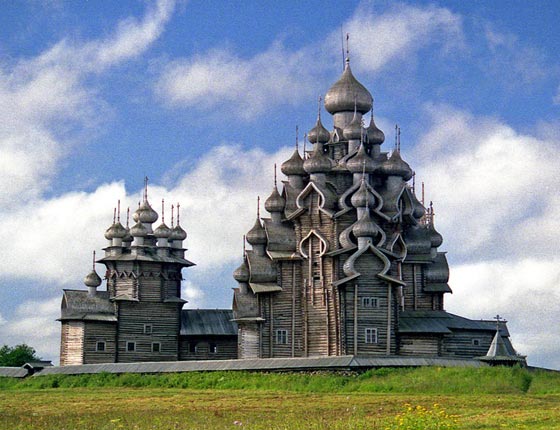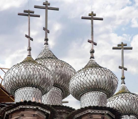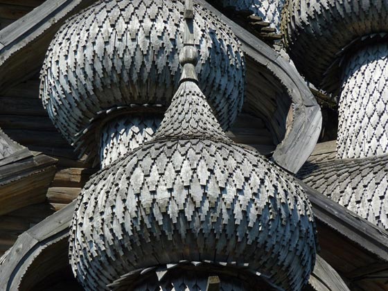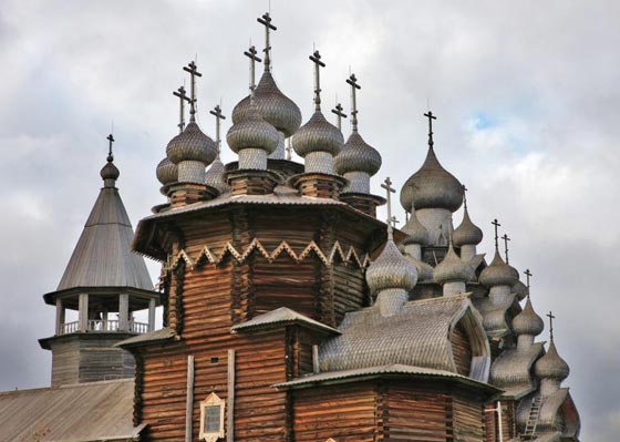 فوق جزيرة صغيرة في روسيا، تقف كنيسة متعددة القبب، عمرها أكثر من 300 عام، بُنيت تماماً من دون استخدام أي مسمار وهي مثال رائع يجسد العمارة الروسية في القرن الثامن عشر. تعد جزيرة كازاي موطناً لكنيستين خشبيتين وبرج جرس ثماني الأضلاع، وكان تقليد البناء في روسيا يعتمد على استخدام الجذوع الخشبية فقط بزواياً متشابكة، ومن دون أي تعزيز بالمسامير أو الصلب.
