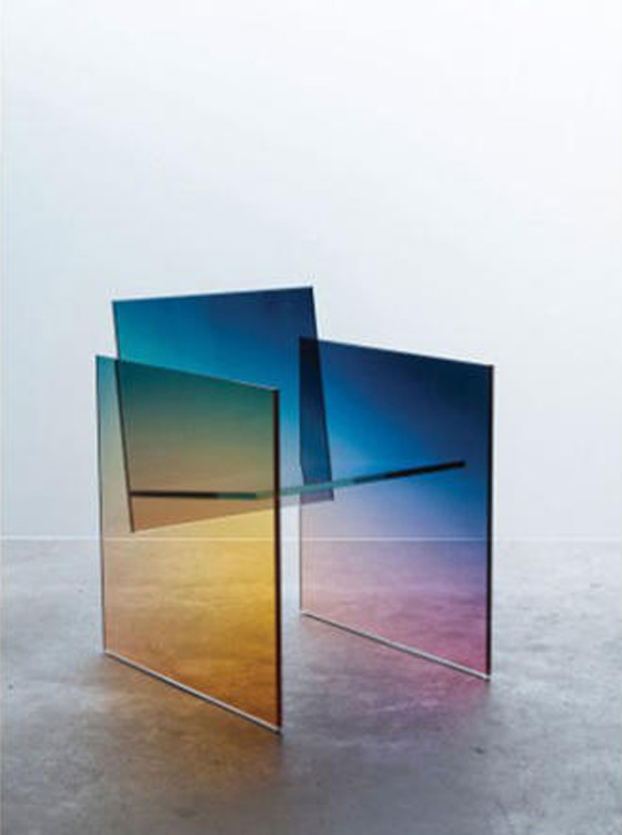 - الزجاج ومزج الألوان التدريجي من الخصائص المميزة في عالم التصميم، حيث دمج المصمم جيرمانز ايرميكس بين المادتين لصنع الرفوف، والمرايا، ومقاعد الجلوس.