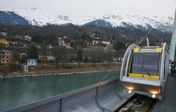 3- سكة حديد Hungerburgbahn: تربط هذه السكة الحديدية المعلقة مدينة إنسبروك بـ هانغربورغ في جبال نوردكيت في النمسا، وتم افتتاحها في عام 2007.