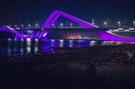 4- جسر الشيخ زايد: يبلغ طوله 842 مترا، وهو الجسر الرابع الذي يربط أبوظبي بالبر الرئيسي في الإمارات العربية المتحدة، واستغرق إنشاؤه ما يقرب ثماني سنوات. وتصل أقواس الهيكل المموجة إلى ارتفاع يصل إلى 60 مترا فوق سطح الماء.