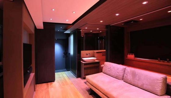 المساحة الآن تتسع لثمانية أشخاص، الأريكة يمكنها أن تتغير لتوفر صفين للجلوس، لما يشابه المقاعد المتواجدة في السينما.