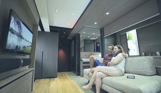 الشقة تتكون من غرفة نوم واحدة، في إحدى أغلى المناطق السكنية بالمدينة، وكانا يأملان بأن يتمكنا من تحويل المساحات "المكتظة" إلى شقة متحولة، بحيث يمكنها أن تتلائم مع مختلف احتياجاتهم.