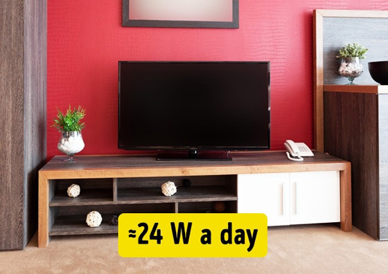 يستمر التلفزيون في استهلاك الطاقة حتى عندما تقوم بايقافه. ويكلفك الكثير سنويا دون ان تستفيد من هذه الطاقة. لهذا تأكد من اقفال التلفزيون كليا بعد الانتهاء من مشاهدة ما ترغب به.