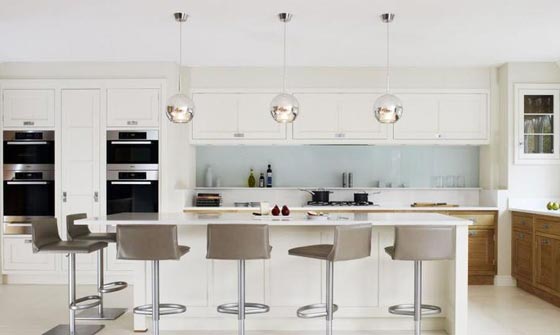 3. الديكور الـ"مودرن": الديكور الـ"مودرن" يعكس شخصيّة نشيطة ومفعمة بالحيوية، وغالبًا ما يُصمّم المطبخ الـ"مودرن" وفق النمط الأمريكي المفتوح، خصوصًا في مساحات الشقق الضيقة، وتبدو الأجهزة فيه مخفية. وفي هذا الإطار، يمكن اختيار قشرة خشب الجوز أو السنديان للخزائن، باللون الأبيض اللمّاع، أو أي لون آخر، مع إدخال الألوان الزاهية المفضلة كالأحمر مثلًا. وإذا كان المطبخ مفتوحًا، يجب مراعاة اختيار الألوان التي تتماشى مع مساحة الاستقبال. وتتدلى وحدة الإضاءة العصرية المصنوعة من المعدن، فوق سطح الـ"كاونتر".