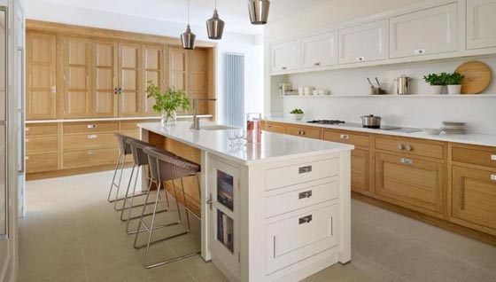 1. الديكور الكلاسيكي: يدلّ الديكور الكلاسيكي على شخصيّة تقليديّة وأنيقة وذواقة، وليس مملّة كما يعتقد البعض خطأ. علمًا بأنّ ديكور المطبخ الكلاسيكي يتصف بمزاوجة ألواح الخشب والألوان الترابية، مع الاستعانة بالرفوف والدرف الزجاج لعرض أواني المائدة، بطريقة جذّابة.