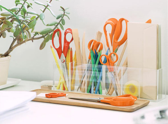 يتميز المقص بلونه البرتقالي الفاقع، أما اللون الأحمر مخصص للذين يستخدمون أيديهم اليسرى