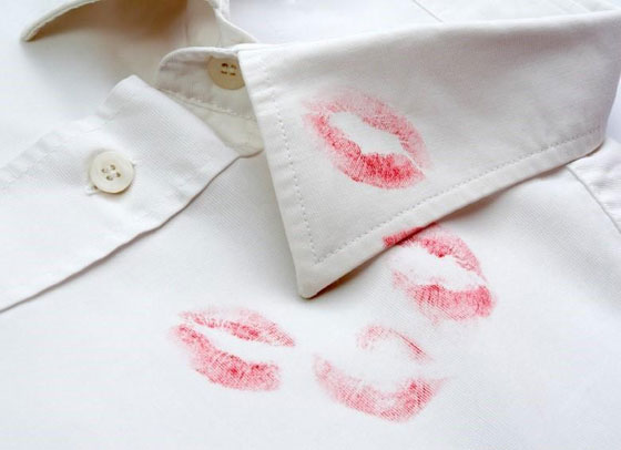 2. أحمر الشفاه: أما إذا لطخ أحمر الشفاه ملابسكِ فلا داعي للقلق، يمكن القضاء على البقعة تمامًا برش سبراي مثبت الشعر.