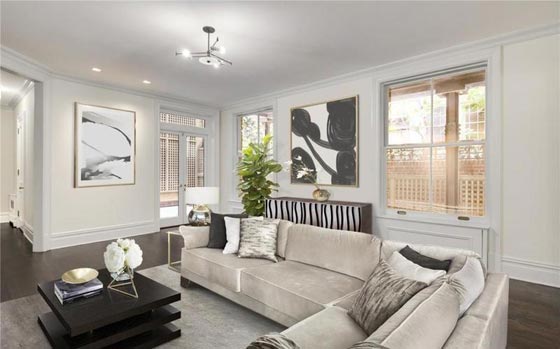 من المُلاحظ هيمنة الألوان الحياديَّة الفاتحة على المكوِّنات الرئيسة في الديكور الداخلي، ما يشيع العصريَّة في المنطقة المفتوحة، مع "ديكورات" فخمة، نظرًا لوفرة أعمال الخشب البارزة على أرضيَّات الغرف والأبواب والسلَّم الكلاسيكي المُزوَّد بدرجات مكسوَّة بالـ"موكيت" البيج. وتتنوَّع الأقمشة في غرف الجلوس، بين الجلد والمخمل اللمَّاع والساتان، ما يطبع المساحة بهويَّة باذخة.