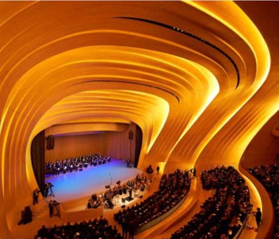 مشهد داخلي لـ "مركز حيدر علييف" في العاصمة الأذربيجانية باكو.