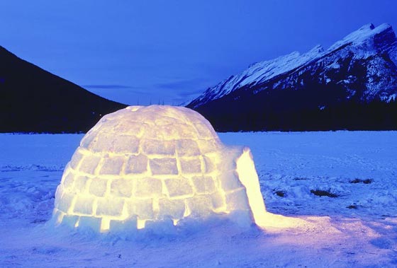 منازل الثلج عند الأسكيمو: تصنع الشعوب التي تقطن في القطب الشمالي منازلها من الألواح الثلجية في خنادق منخفضة قليلاً عن مستوى الثلوج، وبمداخل صغيرة مغلقة بالجليد، أو القطع القماشية، بما يساعد على الدخول والخروج. هذه المنازل الثلجية توفر لقاطنيها الدفء، حيث إن فقاعات الهواء المحبوسة في الثلوج تشكِّل مادة عازلة لدرجة الحرارة.