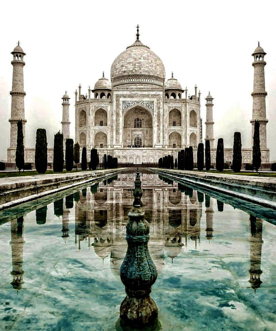 تاج محل: والذي تم بناؤه بدافع الحب والوفاء ليكون ضريحا لمحبوبته، وهي ممتاز محل الزوجة الثالثة للإمبراطور الهندي شاه جهان، والتي توفيت في عام 1631، ليقرر شاه جهان بناء قبر أسطوري على الضفة اليمنى لنهر يامونا وسط حديقة واسعة، ليبدأ العمل في 1632 و لينتهي في عام 1653. وقد أدرجة منظمة اليونسكو هذه التحفة المعمارية ضمن لائحة التراث العالمي كما ويعد أحد اهم المزارات السياحية في الهند.