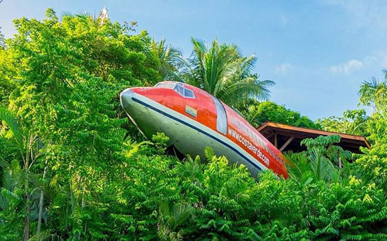 Costa Verde، كوستاريكا: فندق Costa Verde في كوستاريكا هو طائرة قديمة من طراز بوينج 727 تم تجديده عام 1965، والتي كانت تستخدم في رحلات النقل المكوكية من قبل رحلات طيران جنوب أفريقيا وأفيانكا ايرلاينز. هذا الجناح المجهز بالكامل من جسم الطائرة يأتي مع إطلالة رائعة على الغابة، وقد قام الملاك بإنقاذ الإطار الجوي من مكان استراحته في المطار في سان خوسيه، وتحويله إلى مكان إقامة مع غرفتي نوم مكيفتين وحمامات خاصة ومطبخ ومنطقة لتناول الطعام. كما قام المالكين بتحويل قسم مقصورة القيادة في طائرة ماكدونيل دوغلاس، MD-80، إلى منزل ريفي مريح مع سرير ملكي ومنطقة جلوس وحمام ومطبخ.
