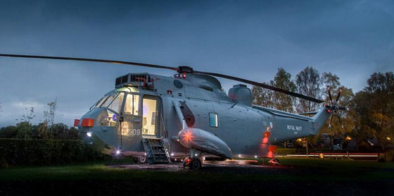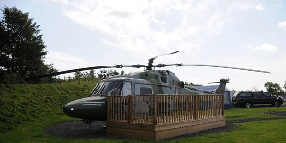 Ream Hills Caravan Park، لانكشاير: في Ream Hills Caravan Park في لانكشاير، تم تحويل طائرة هليكوبتر Westland Lynx XZ676 عام 1982 إلى مكان إقامة لليلة واحدة. يمكن أن يتسع تصميمه الداخلي الأنيق لأربعة أشخاص ويحتوي على حوض مطبخ وثلاجة صغيرة وميكرويف، ويتوفر أيضًا سخان للحفاظ على الدفء في الأشهر الأكثر برودة، وجهاز تلفزيون بشاشة مسطحة. يتم تضمين استخدام مرحاض ودش في مكان قريب في الموقع، وتبدأ الأسعار من 115 جنيهًا إسترلينيًا في الليلة.
