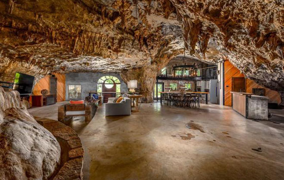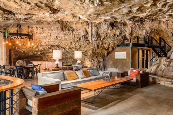 طرحت إحدى وكالات بيع العقارات الأمريكية منزلاً للبيع تم بناؤه داخل كهف، وتم تجهيزه بجميع الأدوات المنزلية التي يحتاجها الإنسان. وجاء تصميم المنزل المعروض للبيع مكوناً من 4 غرف نوم و4 حمامات، بالإضافة إلى احتوائه على نظام شلال مياه ونظام تدفئة أرضي. كما أن المنزل يحتوي على مطبخ حديث الطراز، وبار خشبي بالإضافة إلى صالون، كما تحتوي حديقة المنزل على مهبط للطائرات. في السابق كان يتم تأجير المنزل بمبلغ صل قيمته إلى 1200 دولار في الليلة الواحدة، ليرتفع الرقم الآن ويصل إلى 1600 دولار في موسم السياحة. الجدير بالذكر أن المنزل يقع في ولاية أركنزاس الأمريكية، ووصل سعره الأن إلى 41 ألف دولار أمريكي.