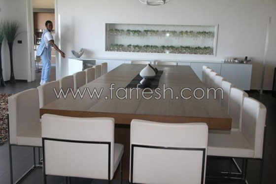طاولة الطعام بتصميم مميز وبألوان هادئة تتناسق مع ألوان غرفة الجلوس