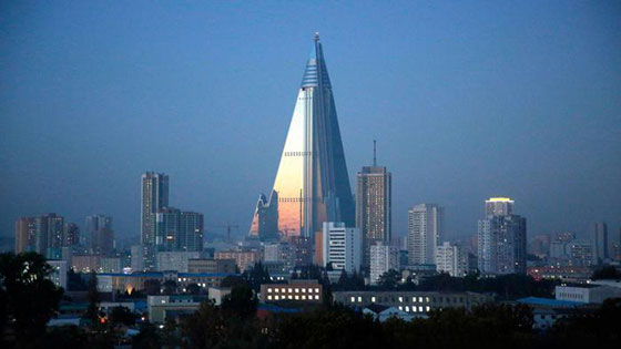 9. في عام 1987 بدأت كوريا الشمالية ببناء أعلى فندق في العالم، بارتفاع يصل إلى 330 متراً. وكانت الخطة أن يتسع الفندق لثلاثة آلاف غرفة ونواد ليلية ومطعم دوار في أعلى البرج، لكن وحتى يومنا هذا، تم الانتهاء من بناء الواجهة فقط.