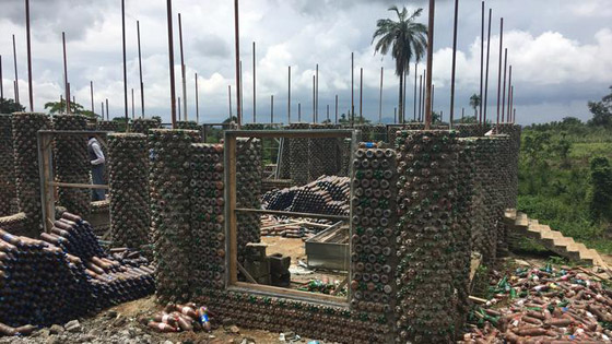 في ضاحية تبعد 20 كيلومترا عن ابوجا عاصمة نيجريا يقام أكبر مبنى من الرمل والقناني والأسمنت في إفريقيا. حتى هذه المرحلة من البناء، استخدمت 46 ألف قنينة فارغة، اشتراها البناؤون من جامعي القمامة، وفي بعض الأحيان حصلوا عليها مجاناً.