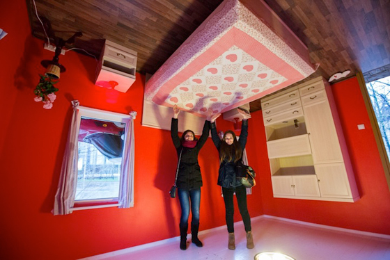 فكرة بناء المنازل رأسا على عقب ليس جديدة، لكنها لا تزال تكتسب شعبية كبيرة في جميع أنحاء العالم. زارت المصورة الفوتوغرافية "جوليا سنودكوفا" البالغة من العمر 32 عاما منزلا مجهولا في العاصمة الروسية موسكو مع أصدقائها لينز وليانا. وخاض الثلاثي رحلة غير عادية داخل أرواق المنزل الذي تم تصميمه رأسا على عقب، حيث كانت المراحيض والخزائن وحتى السيارة مقلوبة رأسا على عقب. كانت جوليا قد رصدت اللقطات للمنزل الغريب في الشهر الماضي، وشاركتها مؤخرا عبر الإنترنت.