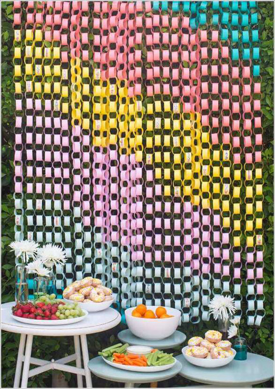 9- عريشة بسيطة من الأشرطة الملونة والمصابيح لإضفاء أجواء احتفالية على المكان.
