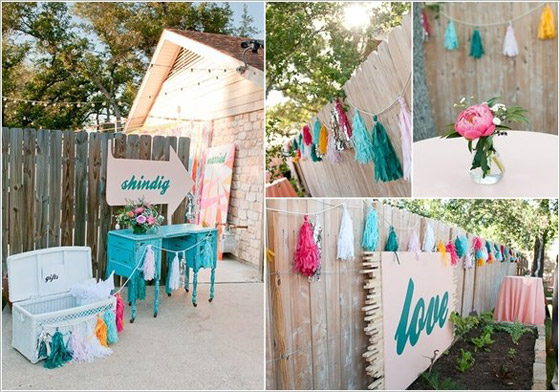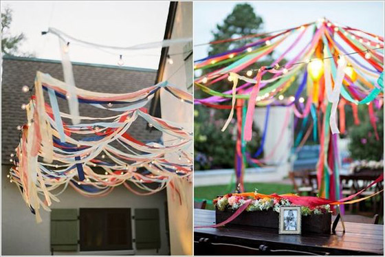 8- طريقة أخرى لتزيين الحديقة المنزلية للحفلات باستخدام الأشرطة الملونة.