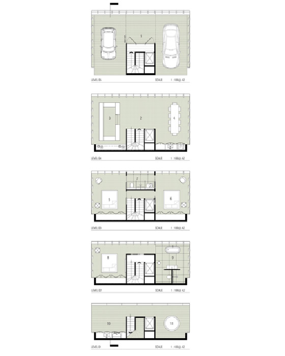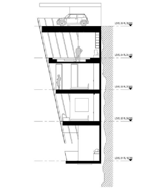 وأشارت الصحيفة البريطانية إلى أنّ السُكان في هذا المنزل سيدخلون إلى الطابق الأرضي من أعلى المنحدر وهو عكس العادة، وسيتضمن الطابق فناءً في الهواء الطلق بجوار ساحة انتظار السيارات، وستتصل الطوابق بواسطة المصعد أو الدرج، مع وجود غرفة نوم وغرفة معيشة ومطبخ، كلٌ منهم بمساحة منفصلة في الطوابق المختلفة، ولعلّ ما يثير الاهتمام هو وجود منتجع صحي ومساحة كافية للجاكوزي، وأخيراً أشارت إلى أنّ الأجزاء الداخلية في المنزل ستجهز بالحد الأدنى من الأثاث، وذلك كي تؤكد على الاتصال بالمحيط والأفق.