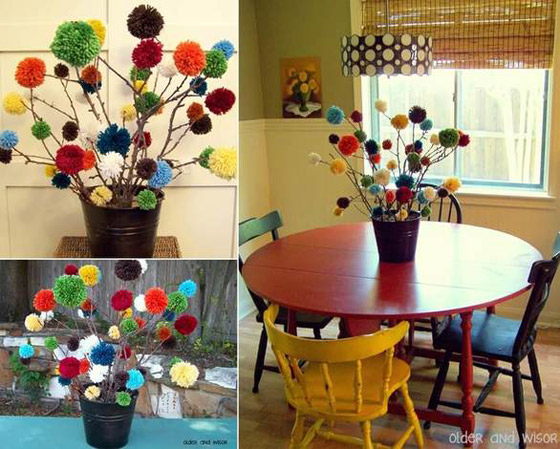 1- ملء وعاء كبير بكرات من الخيطان أو الصوف ووضعها في مكان بارز على الطاولة.