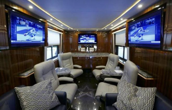 7. دالاس كاوبويز: "دالاس كاوبويز"، فريق في دوري كرة القدم الأمريكيَّة في قسم AFC الشرقي، وهو يُسمَّى أيضًا بـ"فريق أمريكا" نظرًا إلى شعبيَّته الكبيرة، وفوزه بخمسة ألقاب في الـ"سوبر بول". يتكوَّن منزل الفريق المتنقِّل من صالة استقبال مؤثَُّة بمقاعد مريحة.