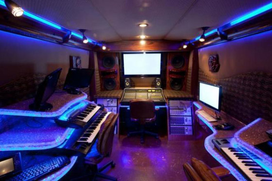 8. تمبيرلاند: حوَّل فريق "تمبيرلاند" الأمريكي المنزل المتنقِّل الخاص به إلى "استوديو" ضخم للتسجيل، والعزف على الآلات الموسيقية.
