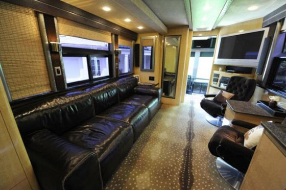 10. روني دان: روني دان مغنٍّ أمريكي شهير يبلغ من العمر 61 سنة؛ فور دخول منزله المتنقل، سيُلاحظ الزائر حضور عدد من المقاعد الجلد السود، وشاشة تلفاز كبيرة.