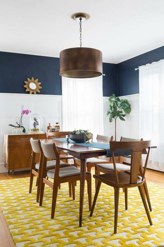 8- إضافة ألوان زاهية متنوعة لغرفة المعيشة عبر مجموعة من الكراسي الخشبية.