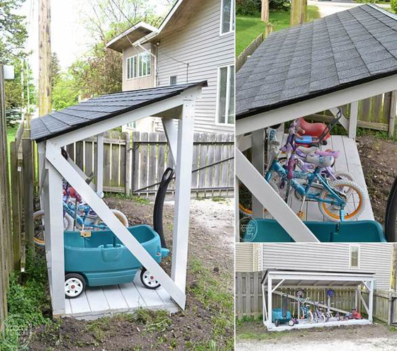 10- بناء مظلة بسيطة توضع دراجات الأطفال والكبار أسفلها.