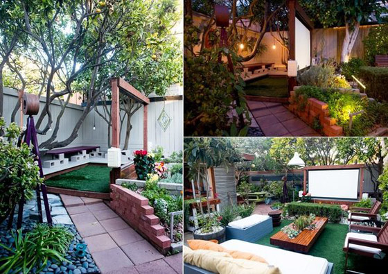 4- تحويل الفناء الخلفي للمنزل إلى ساحة ترفيهية مع شاشة سينما ضخمة.