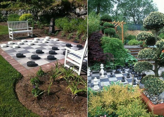 7- ولعشاق الشطرنج، يمكن تحويل أرضية الفناء الخلفي للمنزل إلى رقعة شطرنج ضخمة.