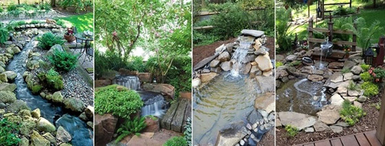 8- تصميم شلال مع نهر صغير يمر عبر الفناء الخلفي للمنزل ضمن أجواء ساحرة.