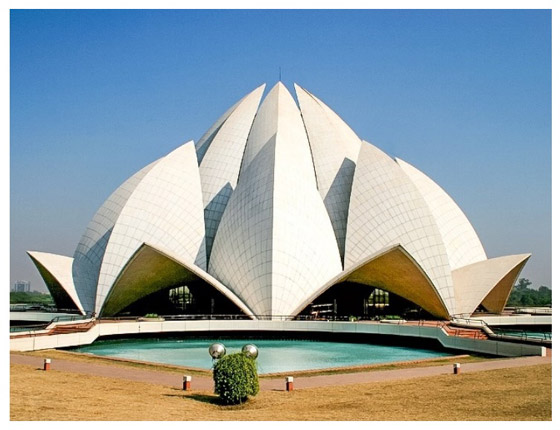 معبد الديانةالبهائية يعد من التصميمات الهندسية الرائعةيعد هذا المعبد هو المكان الرئيسي للديانة البهائية، والمعبد كبير في حجمه وواجهته على شكل زهرة اللوتس، ويحتوي على 9 أبواب كلها تؤدي إلى القاعة المركزية في الداخل، وكل الأبواب مفتوحة للجميع مهما كانت الديانة، ويعد من التصميمات الهندسية الرائعة.