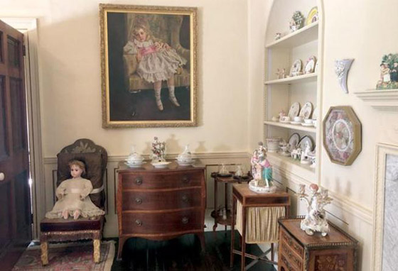 حجرة الاستقبال وبها لوحة مرسومة لأجاثا في طفولتها ودميتها روزي
