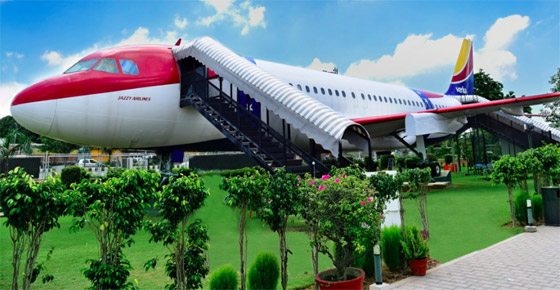 3. مطعم هاواي أدا - الهند: ومن غانا ومطعم الطائرة المفقودة الشهيرة، نتجه صوب قارة أخرى، إلى الجنوب من آسيا، وتحديداً إلى مدينة لوديانا شمال الهند، لنعيش تجربة طعام مختلفة وفاخرة إلى حد كبير، وذلك في مطعم هاواي أدا Hawai Adda، الذي يعتبر أكثر مطاعم البلاد أناقة وفخامة، والذي تم تشيده في طائرة إيرباص A320، كانت تابعة لشركة الطيران الهندية إير إنديا. وما يجعل مطعم هاواي أدا بهذه الفخامة التي ذكرناها، أن تصميمه استوحي من تصميم قطار مهراجا إكسبريس Maharaja Express الشهير، الذي يعد أفخم قطارات الهند على الإطلاق.
